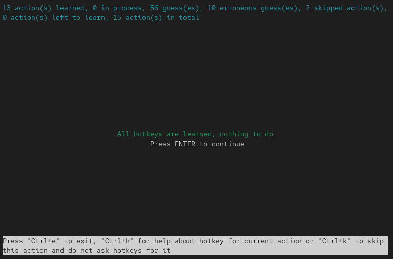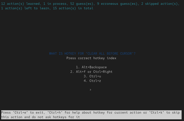 Посмотрим на работу программы на примере обучения горячим клавишам для bash, для этого запустим: